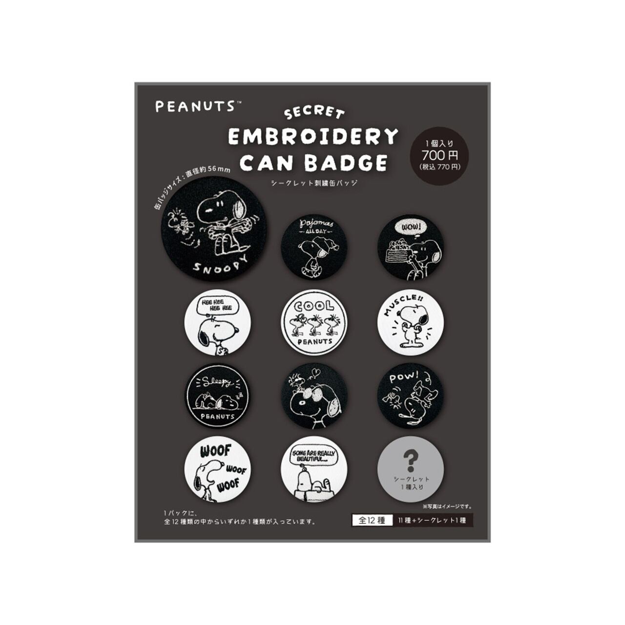 【ロット販売】【12入】スヌーピーシークレット刺繍缶バッジブラック&ホワイト/単12(5257144)